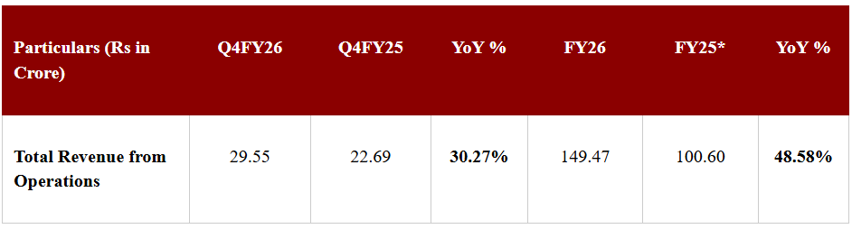 - FY26 revenue surged 48.58% to ₹149.47 crore
