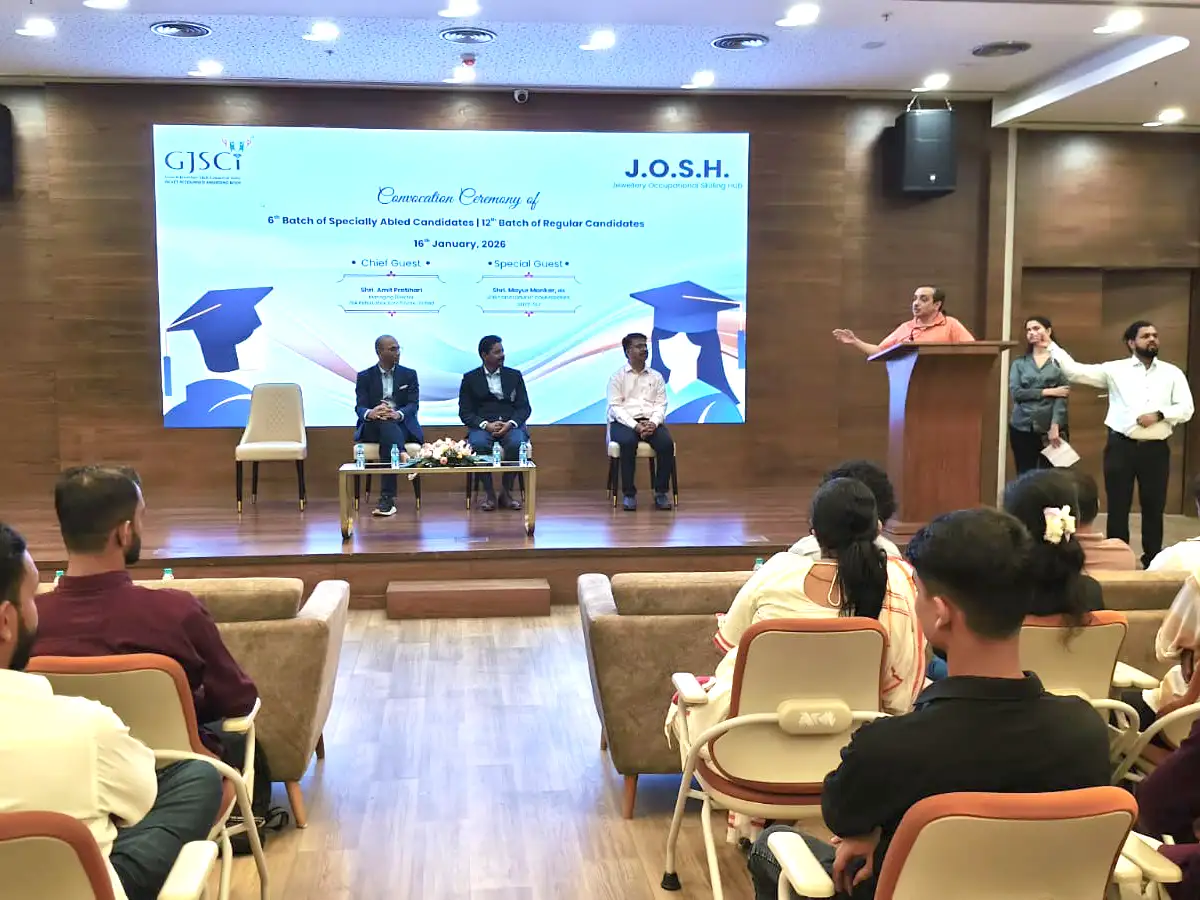 The Gem & Jewellery Skill Council of India (GJSCI) organised the convocation ceremony of JOSH for the 6th batch of specially abled candidates and the 12th batch of regular candidates on 16 January 2026 at the Bharat Ratnam Mega Common Facility Centre (CFC), SEEPZ. The ceremony marked the successful completion of training for the candidates, celebrating their hard work, determination, and readiness to step into the gem and jewellery industry.